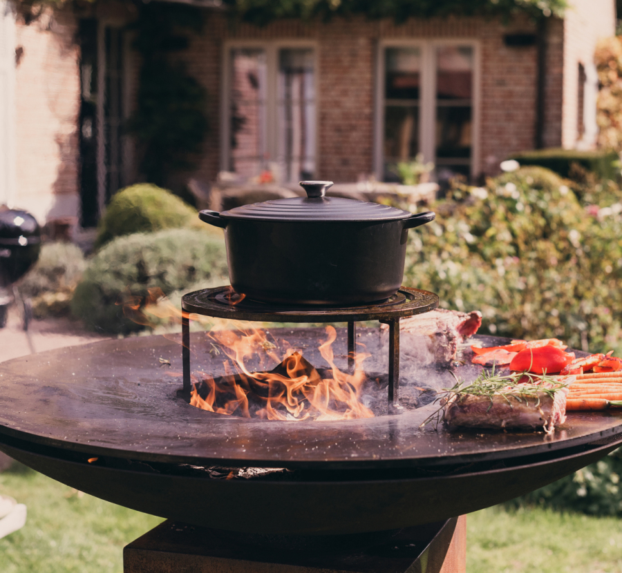 Une Plancha OUTR se compose de trois parties : un socle (ouvert ou fermé) avec un coupe-feu sur le dessus, terminé par une plaque de cuisson en haut. Ce coupe-feu sur socle n'est pas seulement beau, il est aussi polyvalent. Vous pouvez l'utiliser comme source de chaleur ou pour préparer des plats délicieux.