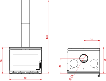 • à l’aide des kits optionnels, il permet d’avoir soit la ventilation frontale soit la canalisation de l’air chaud dans d’autres pièces