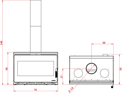 • à l’aide des kits optionnels, il permet d’avoir soit la ventilation frontale soit la canalisation de l’air chaud dans d’autres pièces