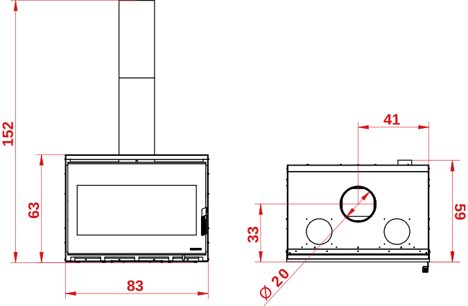 • à l’aide des kits optionnels, il permet d’avoir soit la ventilation frontale soit la canalisation de l’air chaud dans d’autres pièces